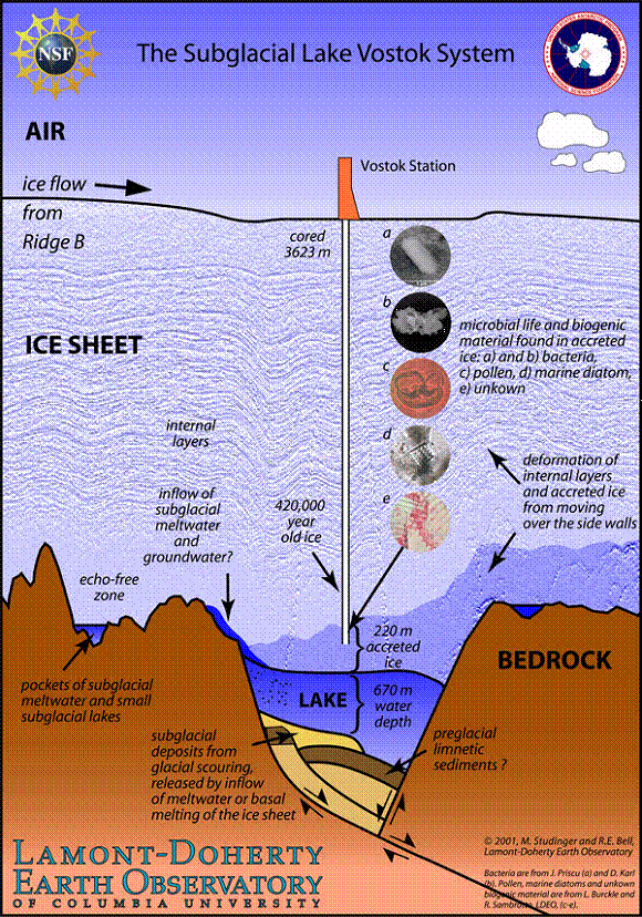 Figure 6.11: After drilling through almost 4 kilometers of ice, they found Lake Vostok. Look at what they also drilled through on the way. Apparently, the ice has been accumulating for over 400,000 years.
